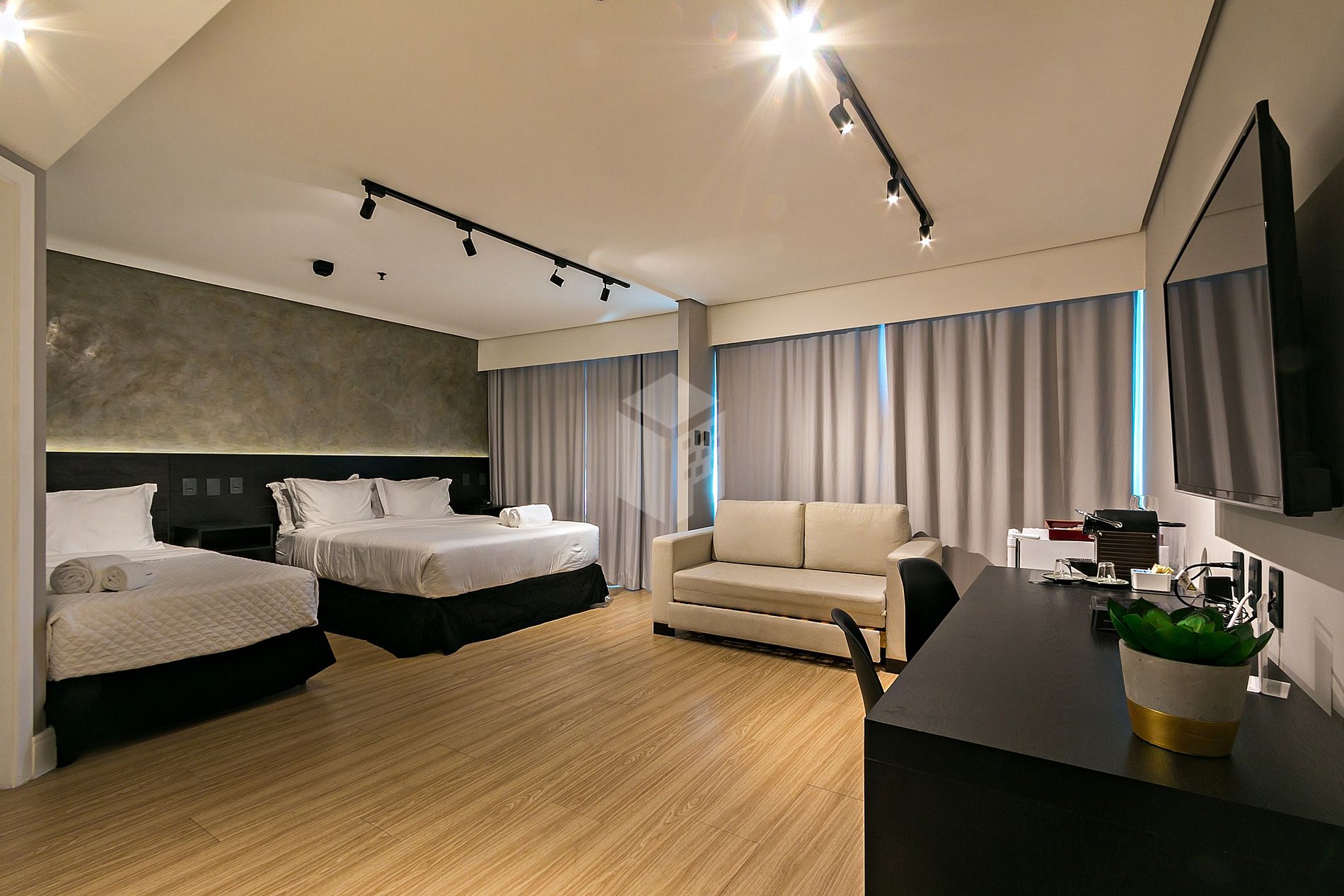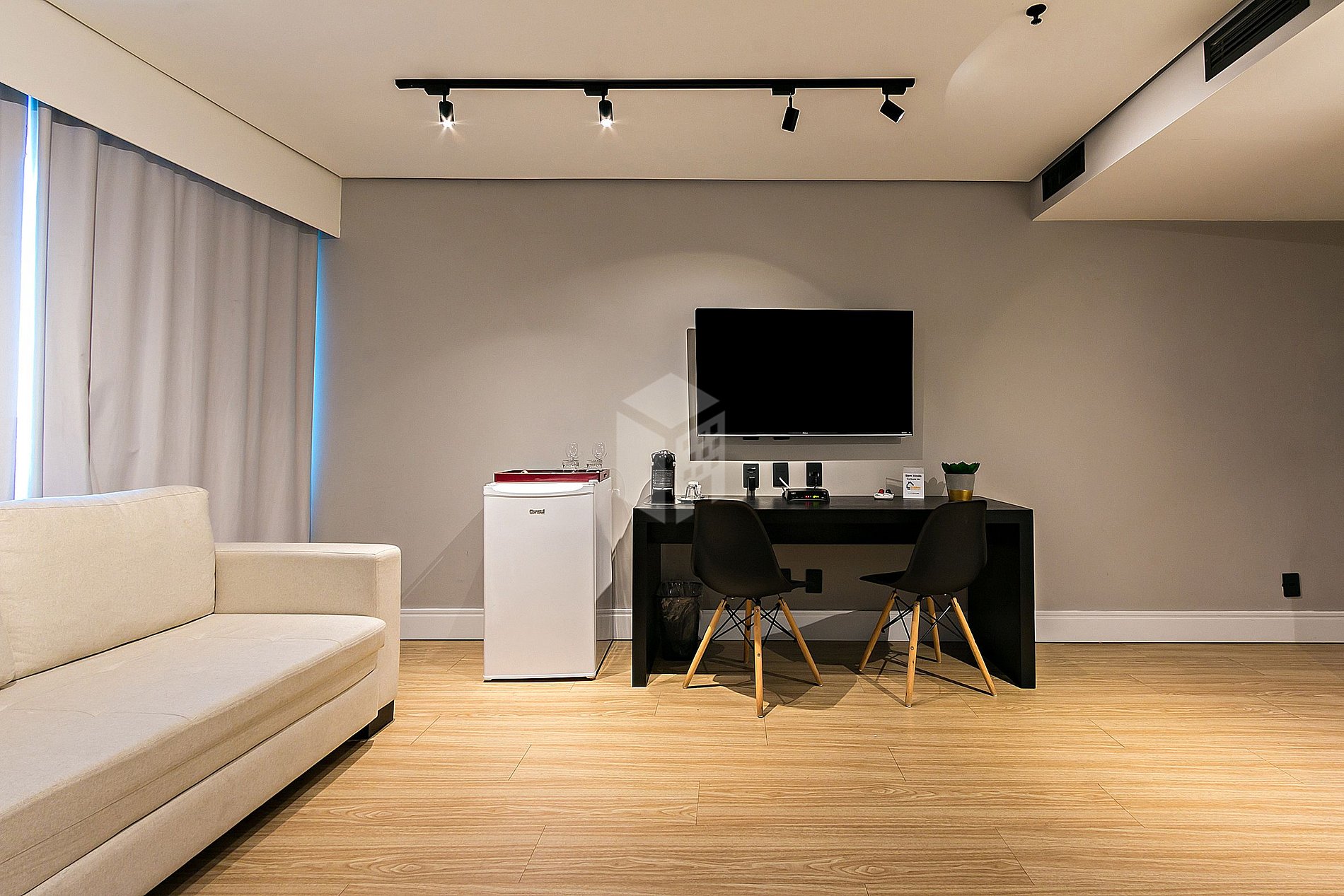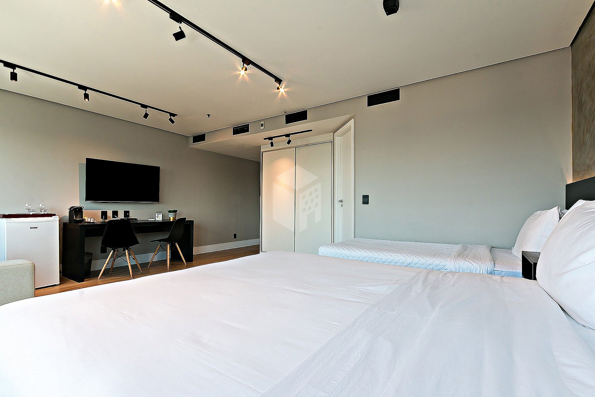 Além disso, temos cápsulas de café Nespresso e bebidas de cortesia no frigobar de cada unidade.